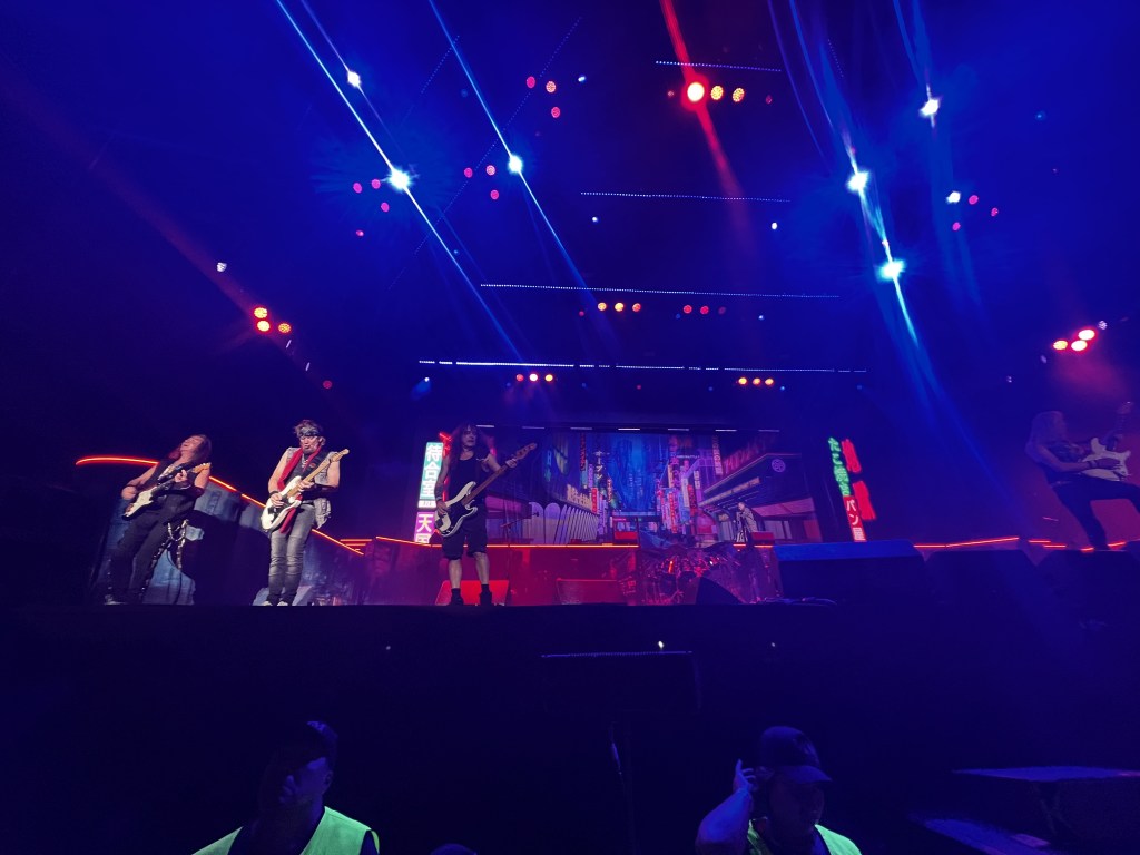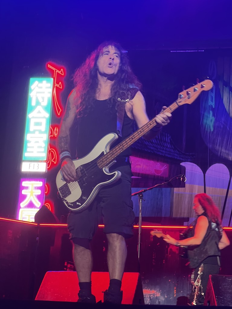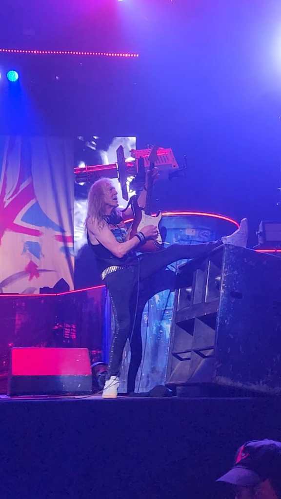 El sonido fue impresionante, con una calidad nítida que permitió disfrutar de cada instrumento, desde las guitarras afiladas de Dave Murray y Adrian Smith hasta la batería inquebrantable de Nicko McBrain. Steve Harris, el bajista que estuvo imparable, mantuvo la base rítmica firme, sólida e interactuando con la multitud, mostrando una vez más por qué Iron Maiden sigue siendo una de las bandas más grandes del mundo del metal.