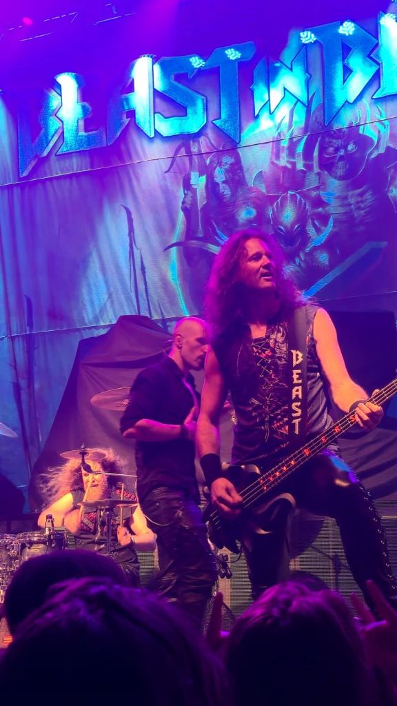 The opening act, Beast in Black, was just as exciting for me because I am also a big fan of their music. They performed some of their biggest hits like “Blind and Frozen” and “Power of the Beast,” delivering a high-energy set that immediately connected with the crowd. What stood out the most was how long they played—almost ten songs, which is more than what most opening bands perform. By the end of their set, the audience was fully energized and ready for Helloween. They even announced their upcoming U.S. tour and confirmed they would return to The Fillmore, which made the crowd even more excited.