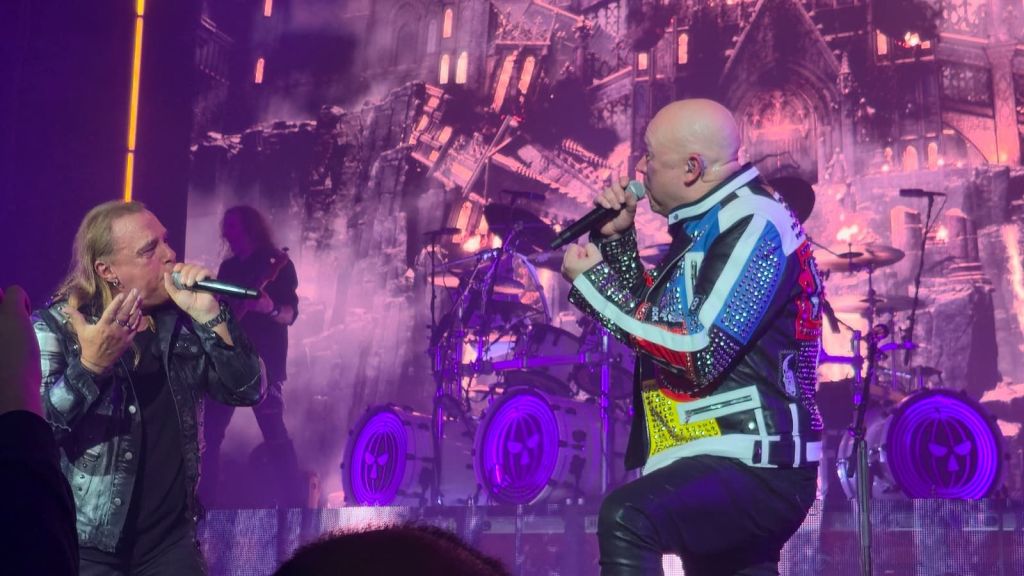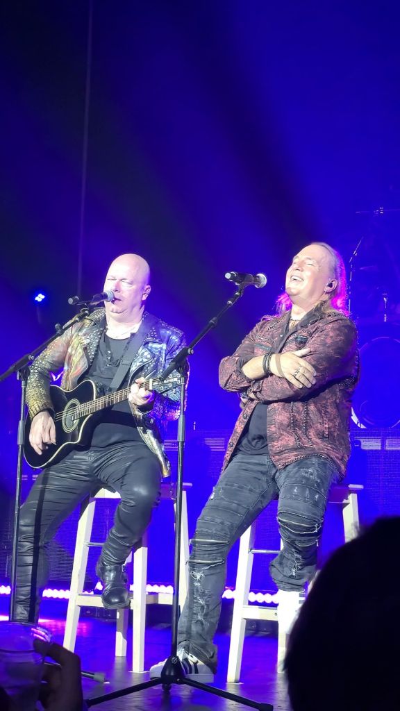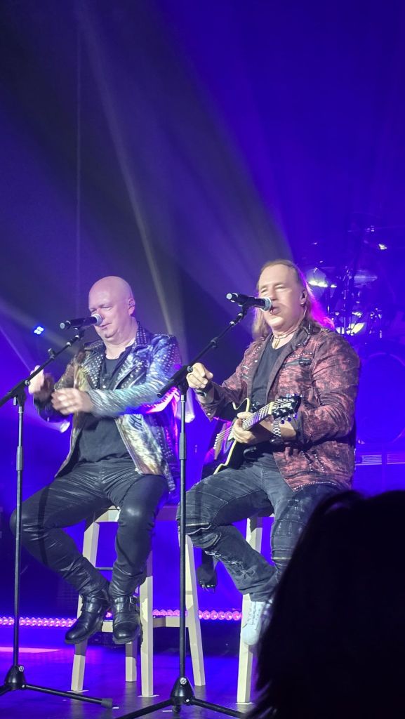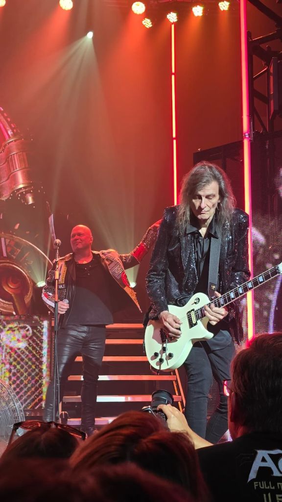 As I moved closer to the front stage, I knew I had made the right choice. I didn’t want to miss a single detail. Around me, people were wearing old tour shirts—some from 2010, others from the 2017 tour—each one telling a story. The energy kept building as everyone waited for the show to begin. When the music finally started, the sound hit hard. The drums were incredibly powerful—so intense that it reminded me of the first time I almost lost my hearing at a Lamb of God concert. However, this time the sound quality was even better. Everything was balanced perfectly. The percussion and instruments never overpowered the vocals, allowing both Andi Deris and Michael Kiske to shine clearly.