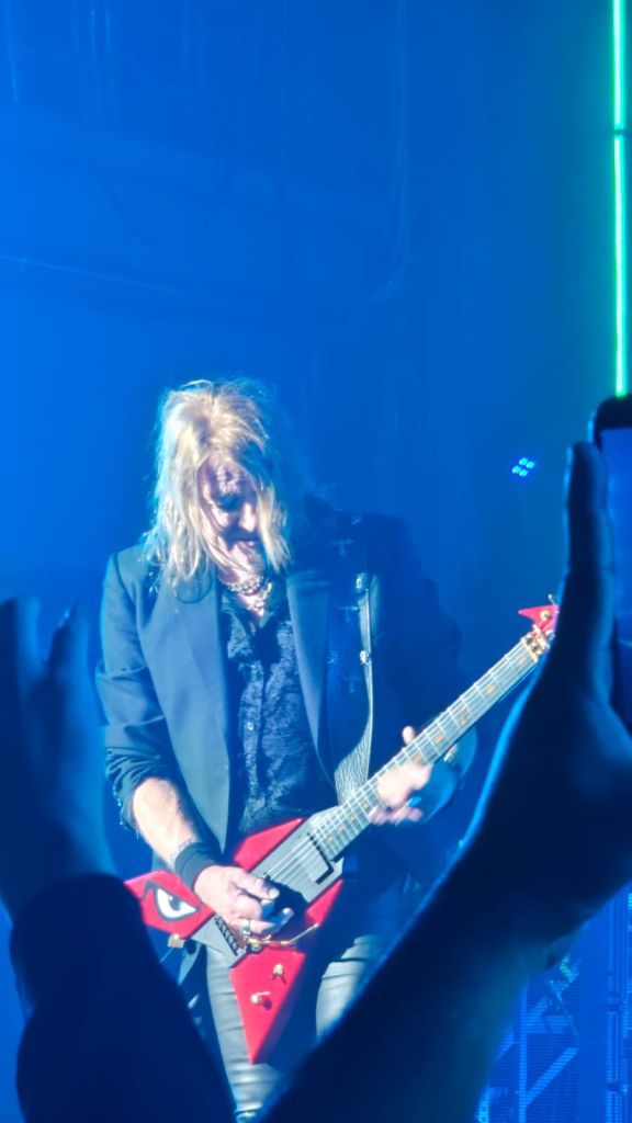 One of the most powerful aspects of the performance was the emotion behind it. Kai Hansen stood out in particular. You could feel his passion through every note he played. It wasn’t just music—it felt like he was sharing something personal with the audience through his guitar. The production was also impressive, especially during “Twilight of the Gods,” when the side screens transformed into arcade machines. The lighting effects and visuals were stunning and added another layer to the experience.